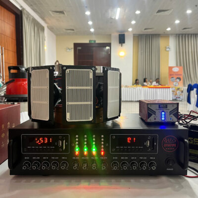 Tại đây TPNEST trưng bày các thiết bị âm thanh dẫn dụ chim yến Piro Indonesia và các thiết bị điều khiển giám sát thông minh nhà yến.
